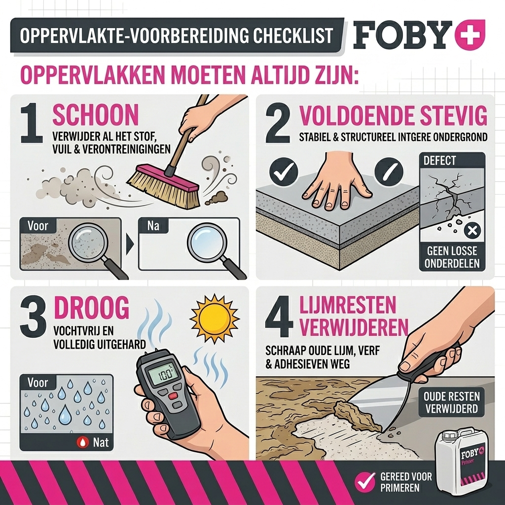 - Voorbereiding ondergrond: Zorg dat de ondergrond schoon, vast en droog is.